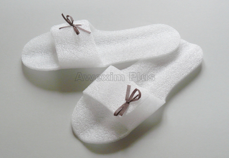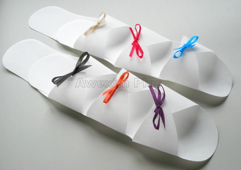 Fizelinowe kapcie do zastosowania w pokoju hotelowym, SPA, gabinecie kosmetycznym lub lekarskim.